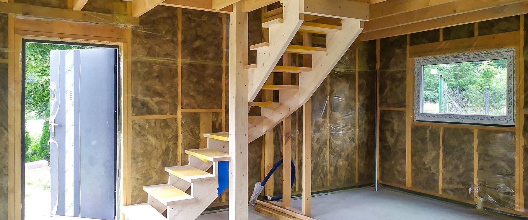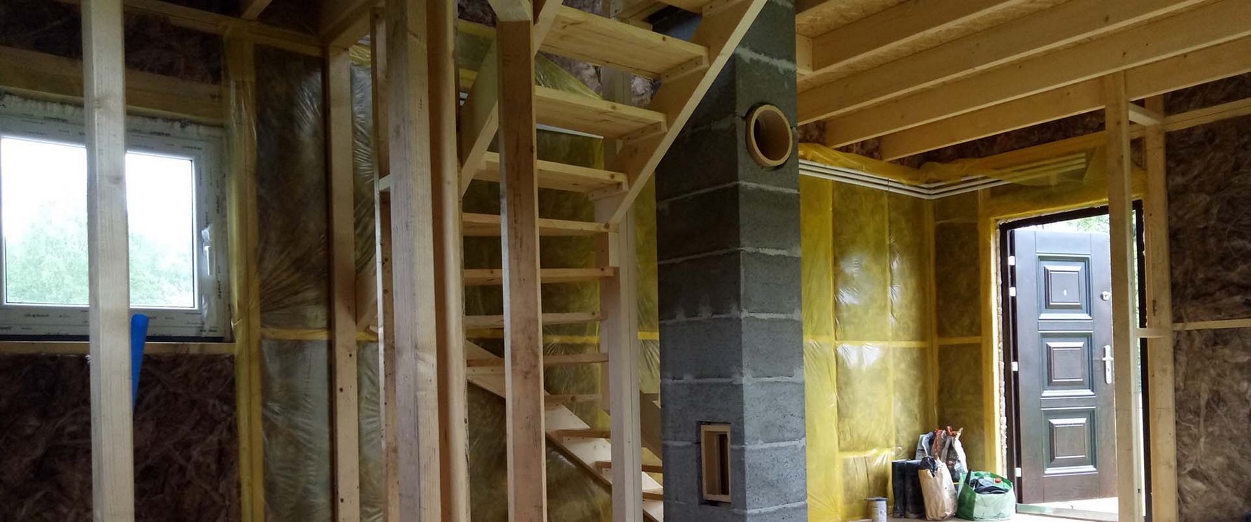 Kolejnym elementem wpływającym na zmniejszenie strat cieplnych jest zastosowanie odpowiedniej wełny mineralnej oraz właściwe jej ułożenie. Wełnę tą stosujemy wyłącznie wewnątrz ścian. W standardzie grubość wełny to 150 mm o lambdzie ustalonej z klientem (w standardzie 038 kW/m). Dodatkowa wełna drzewna pod elewację, układana w inny sposób niż ta wewnątrz ścian pozwala na uniknięcie mostków cieplnych.